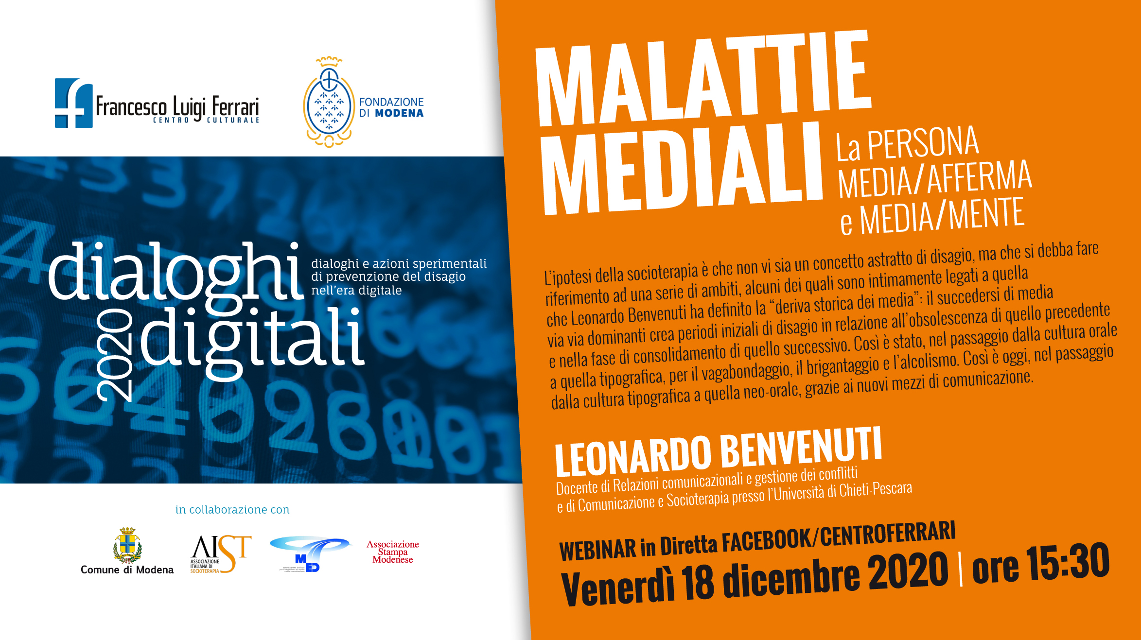 Il 18 Dicembre è previsto un webinar dal titolo "Malattie mediali: la persona media/afferma e media/mente", tenuto dal Prof. Benvenuti, presidente dell'AIST.